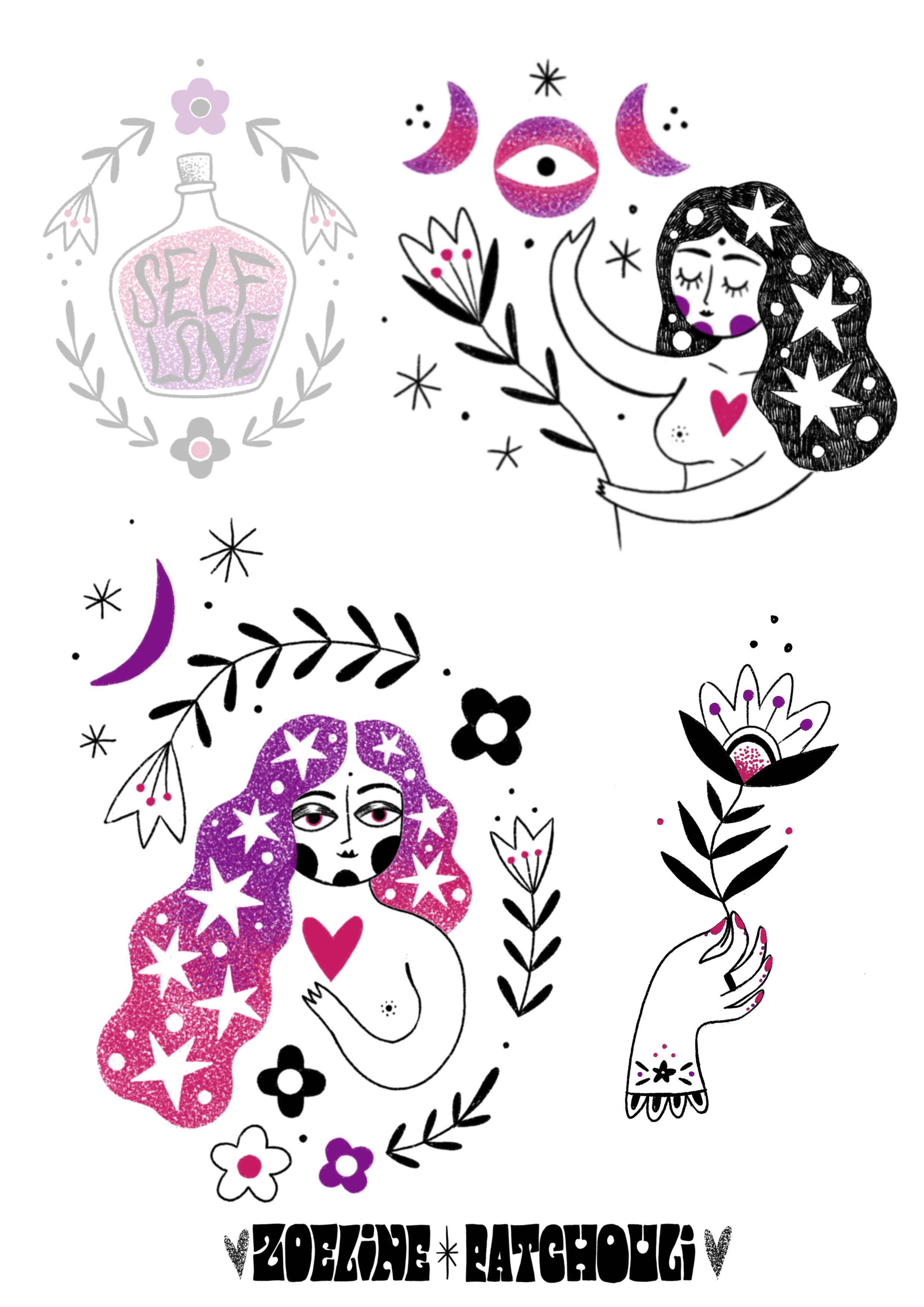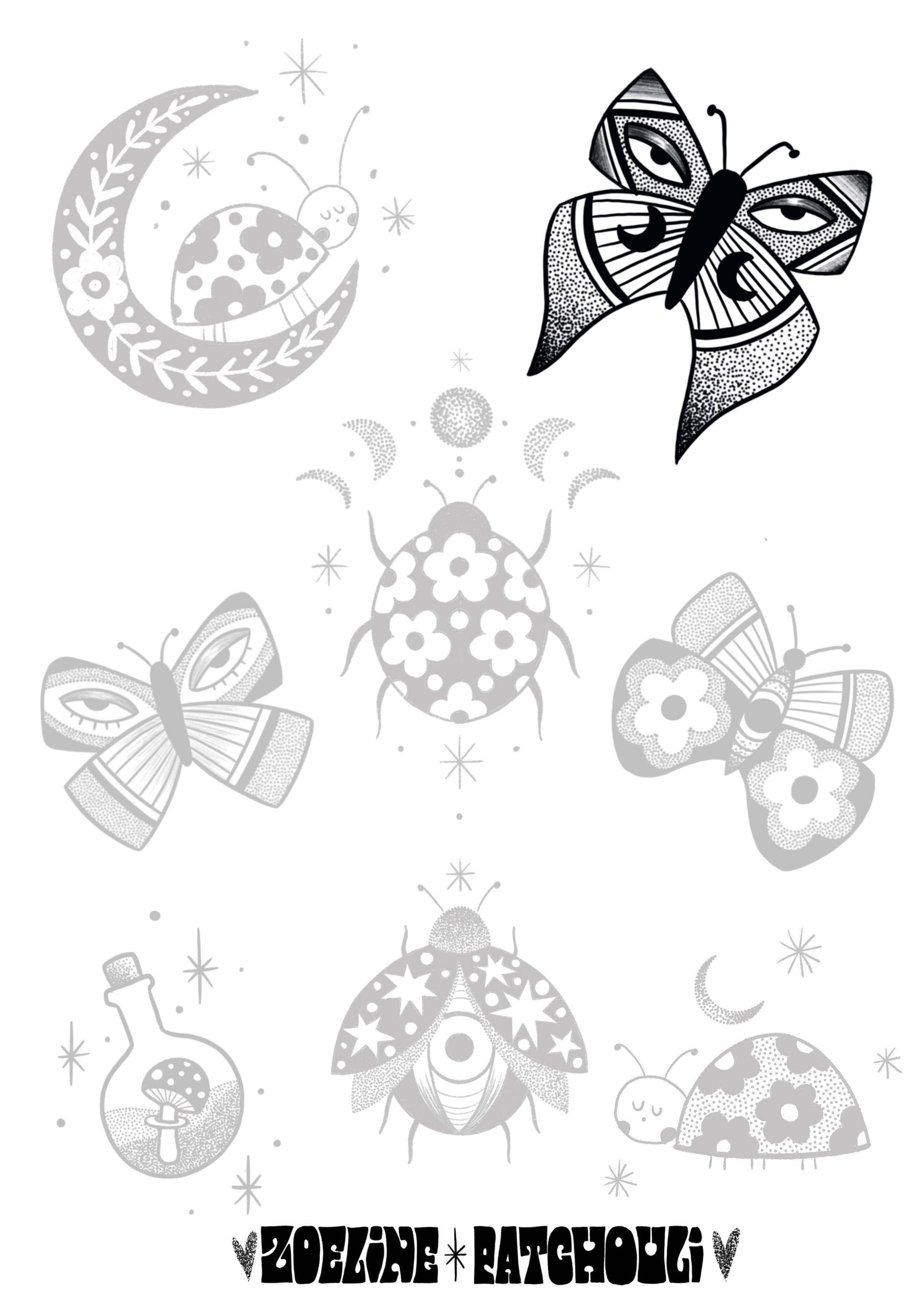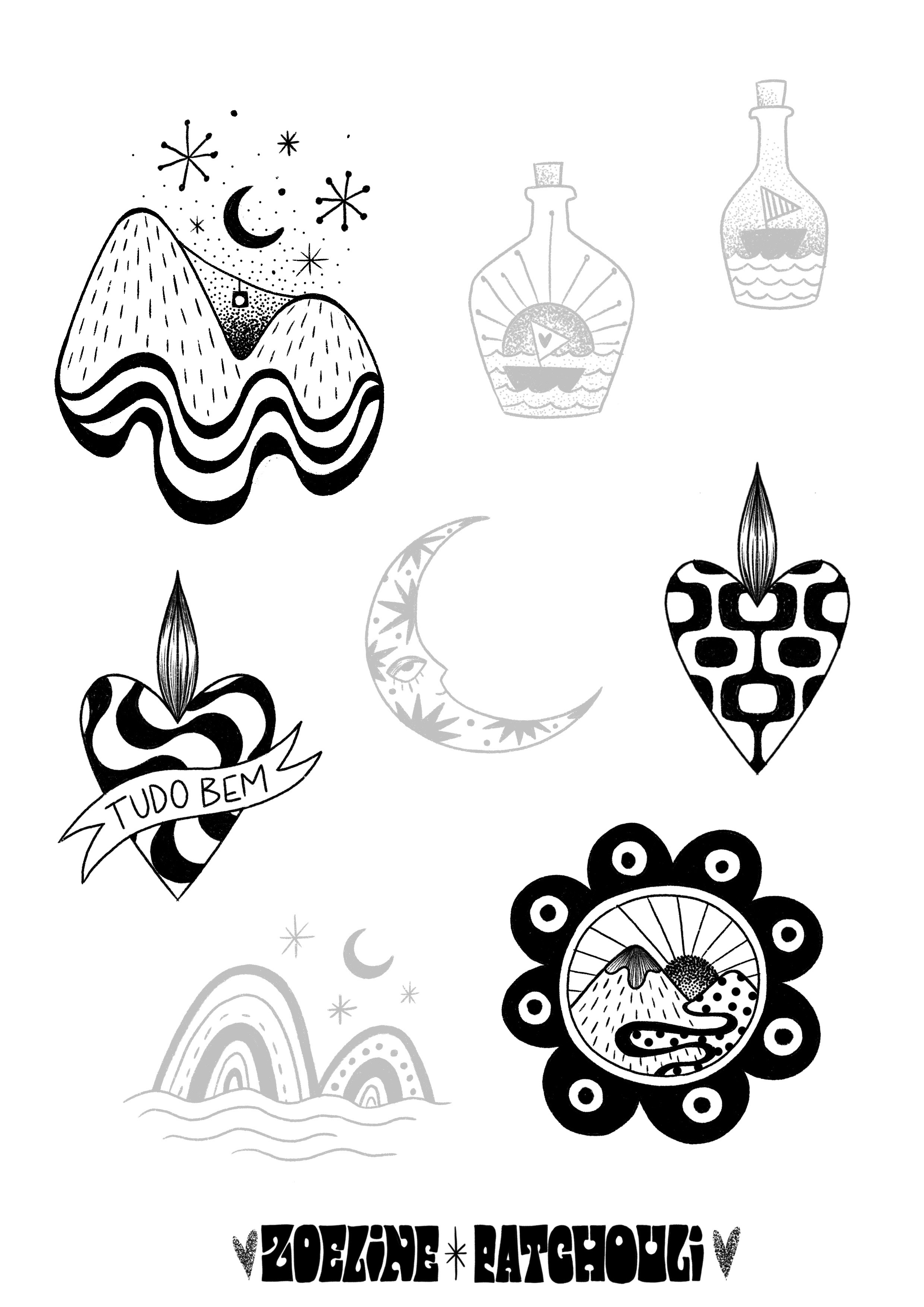 Voici mon book de flash tattoo ! Les flash tattoo sont des dessins uniques prêts à être tatoués par mes soins (toute reproduction complète ou partielle est interdite)